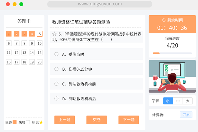 轻速云在线考试软件是一款功能齐全、操作简便的在线考试软件。支持多种题型,包括选择题、填空题、判断题等,可以满足各种考试需求。此外,轻速云还具有以下优点: