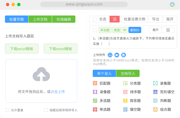 - 强大的题库功能:支持导入导出题库,方便用户管理题目。