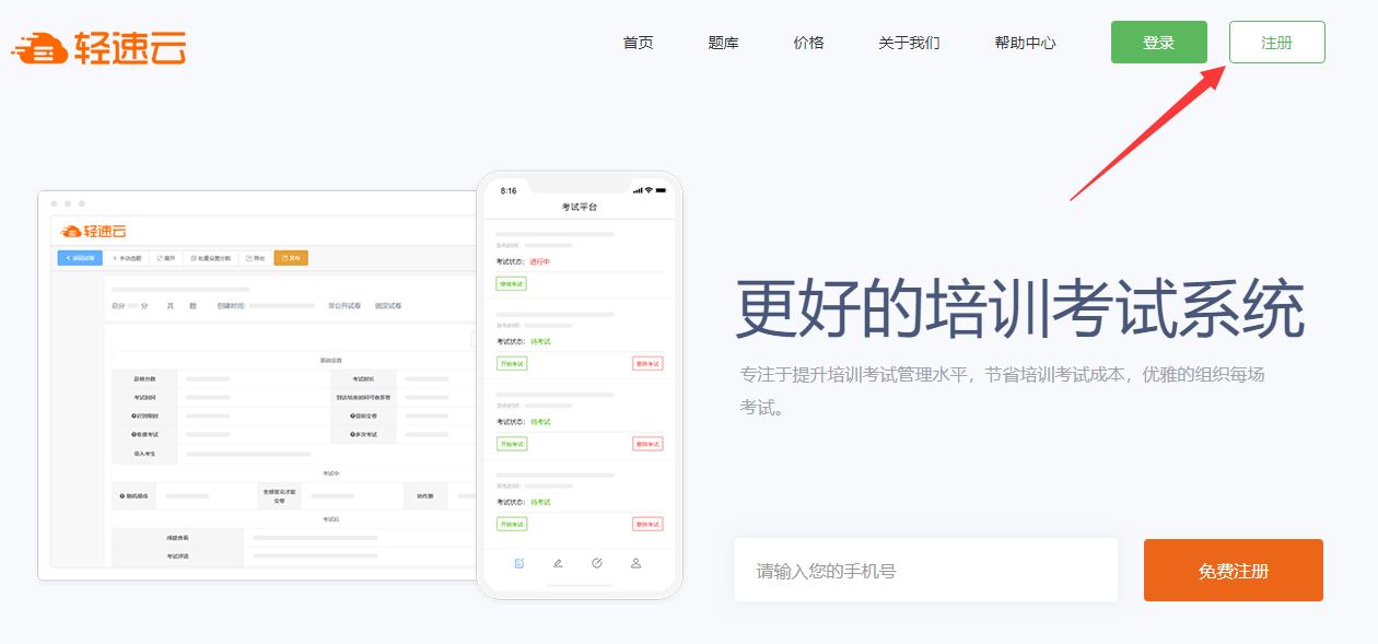 第一步,选择在线考试系统平台来注册帐号。帐号注册需要使用一个手机号码,注册成功后该手机号码就会作为登录帐号,日常使用、密码找回、业务升级办理等都会使用这个手机号码。正确填写系统发送的验证码以及设置密码后,注册就完成了,这个过程是完全免费的。