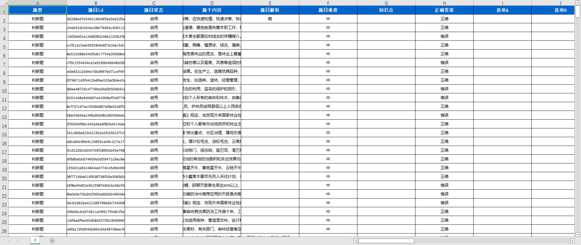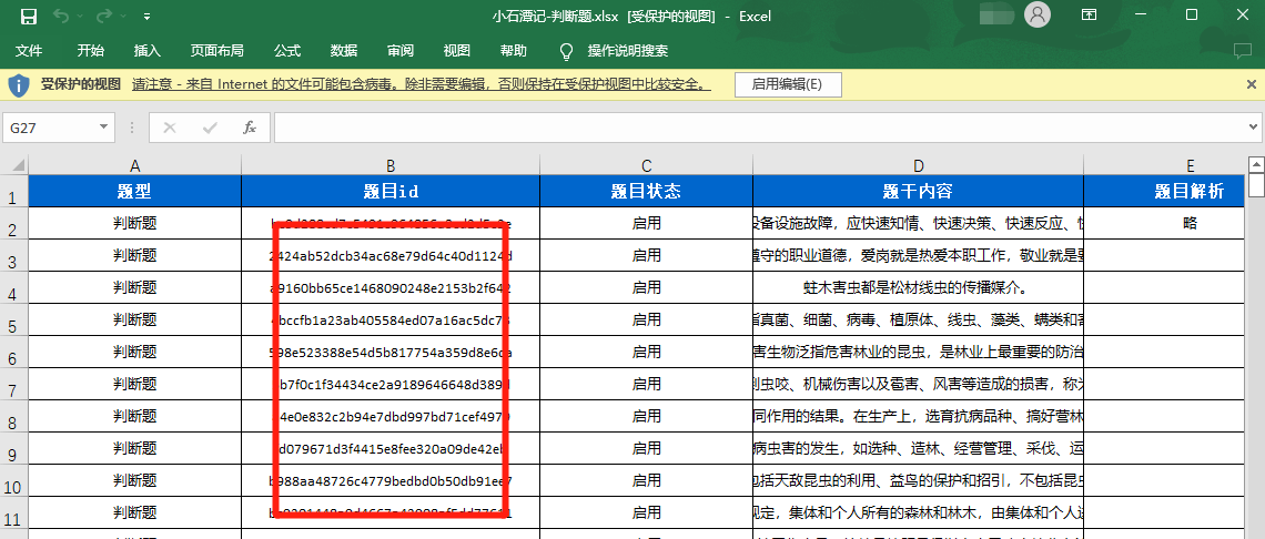 打开导出的题库文档,可找到每道题目对应的题目ID信息。