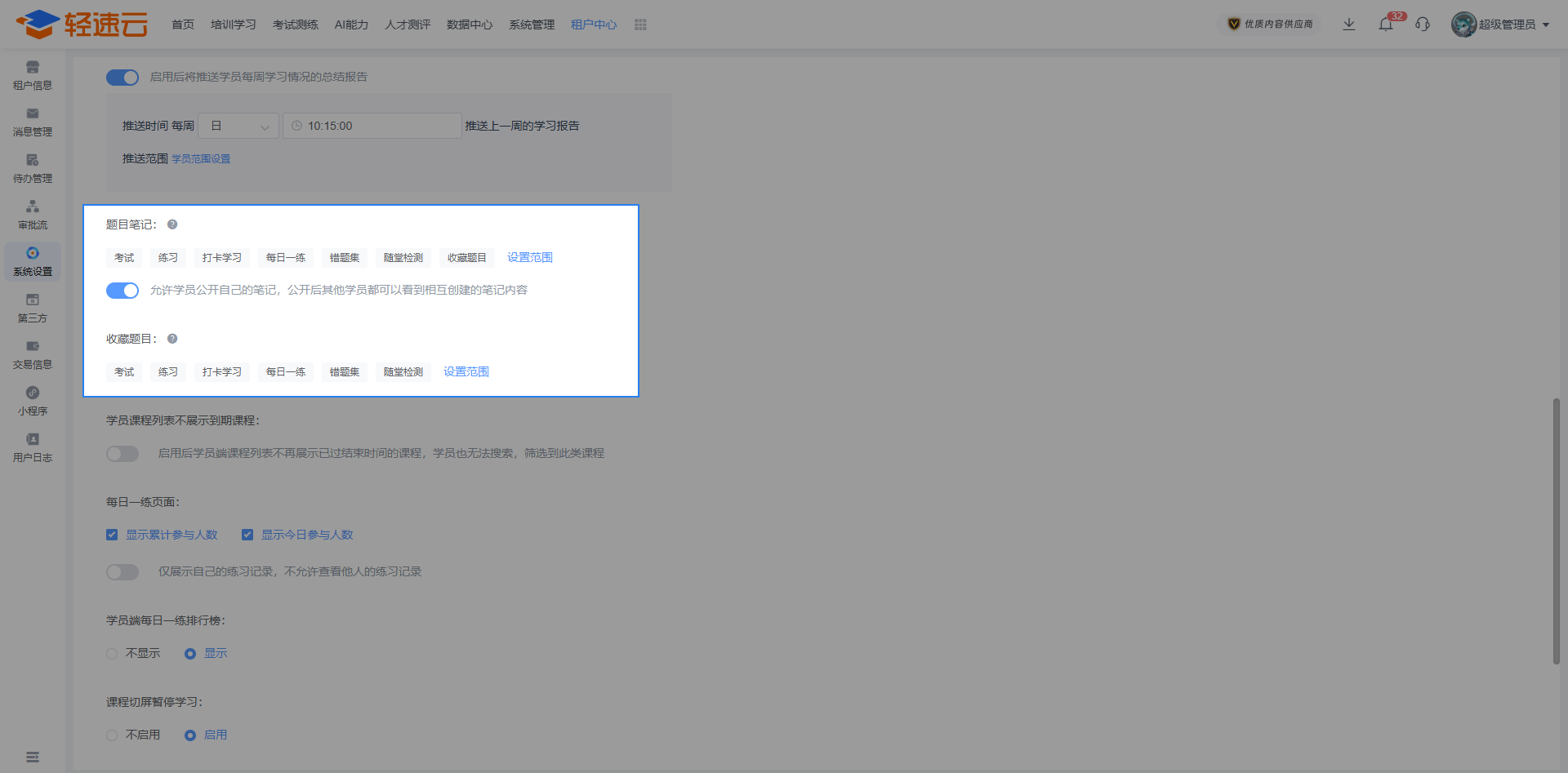 启用此功能需在 管理中心 - 系统设置 - 全局设置 中开启收藏与笔记的功能使用范围。