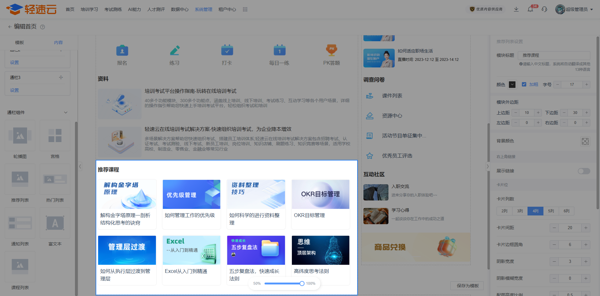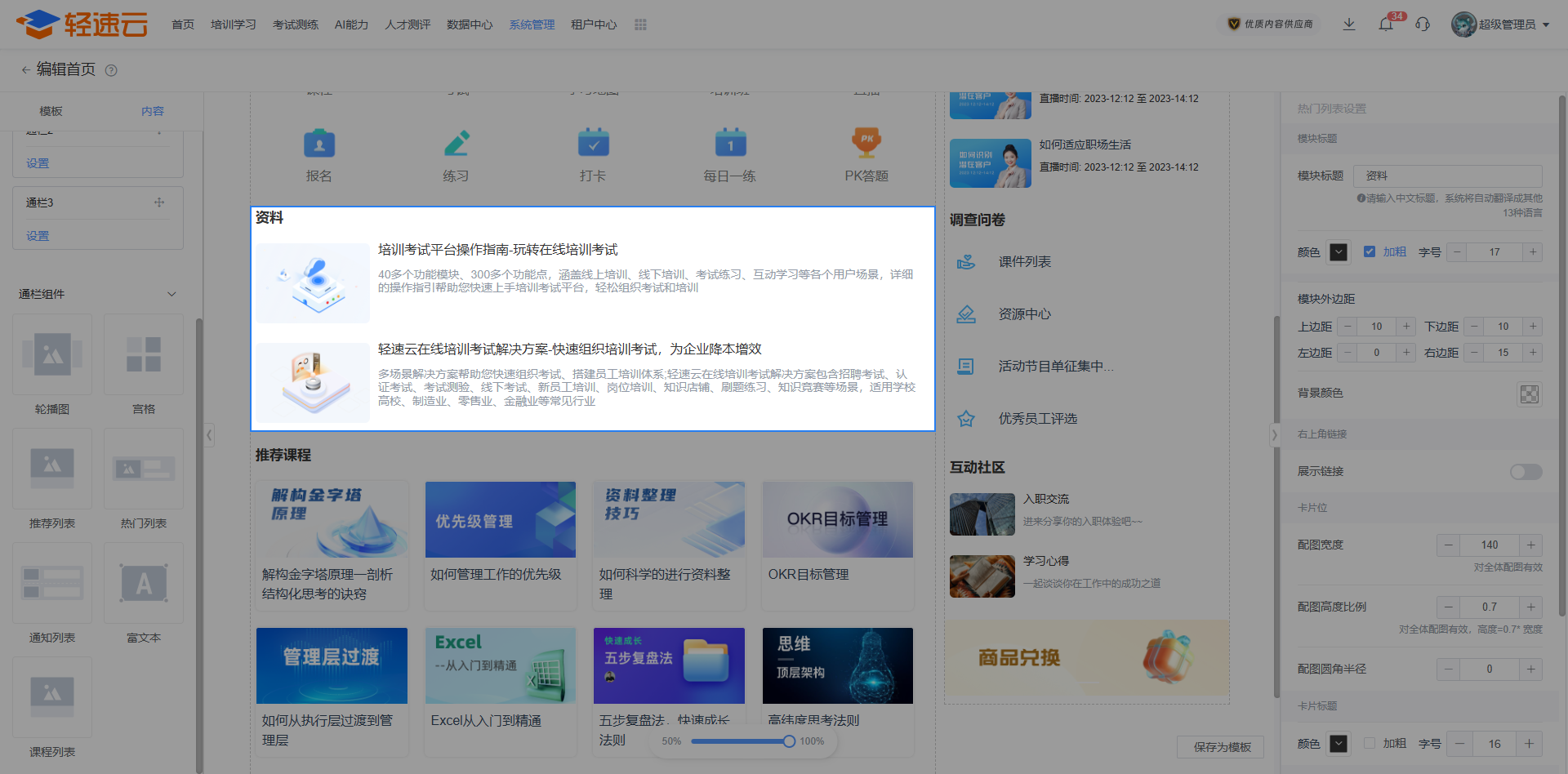 栏目页是首页的拓展和延续,能根据学员所属的部门而展示不同的页面。建议先熟悉配置 首页 后再进行栏目页配置。