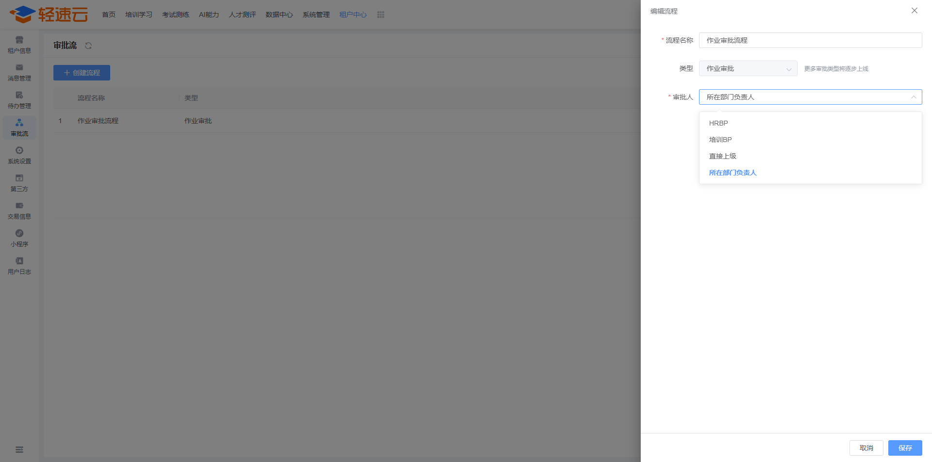 部分功能允许设置审批流程,目前仅支持作业审批。